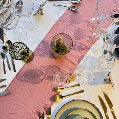 Location - Mobilier, Nappage, Vaisselle - Nappage - Chemin de table coton gaufré Rose poudré 26 x 300 cm